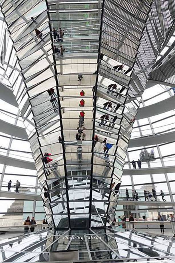 福斯特對機能、空間與人的互動還體現在他對永續建築理念的實踐中。他認為建築應該是人類與自然和諧共存的橋樑,通過設計將自然元素融入空間,讓使用者感受到與環境的連結。例如,他在柏林國會大廈(Reichstag Building)的重建中,加入了透明的玻璃穹頂設計,這一結構不僅讓自然光充分進入建築內部,還通過反射光線的裝置減少了能源消耗。玻璃穹頂內部的螺旋形通道則成為遊客參觀的重要路徑,讓人們可以從中感受到空間與歷史的交匯。這一設計不僅提升了建築的功能性與美學價值,還為建築注入了環保與人文的意義。