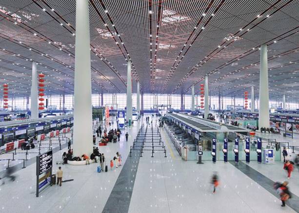 福斯特還在設計中強調機場作為公共空間的角色。他為航站樓設置了大面積的公共區域,包括寬敞的候機大廳與開放式的零售與餐飲空間,這些區域均採用開放式設計,讓旅客可以在放鬆的環境中享受各種服務。這種設計理念重新定義了機場空間的功能性,使機場不僅是交通樞紐,也是人們放鬆、社交與消費的場所。