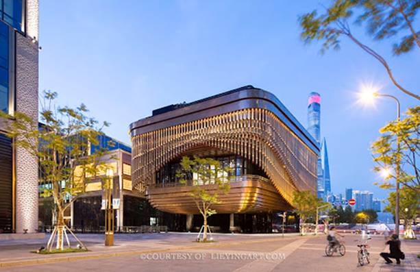 其中,最為引人注目的部分是外灘金融中心的文化中心,這是一座多功能的公共建築,專為舉辦文化活動、藝術展覽和表演設計。文化中心的建築外觀設計極具創意,其外立面由一系列可動的銅質幕簾構成,這些幕簾隨著時間和活動需求而開合,展現出多樣化的視覺效果。這一設計靈感來自於中國傳統的絲綢工藝與折扇文化,幕簾的動態變化模仿了絲綢的柔軟與流動,賦予建築生動的文化意涵。