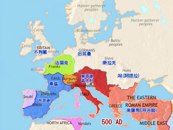 公元476年,西羅馬帝國在內部腐敗、經濟衰退和外部蠻族壓力下正式滅亡,最後一位皇帝羅慕路斯·奧古斯都(Romulus Augustulus)被日耳曼將領奧多亞塞(Odoacer)推翻。羅馬帝國的崩潰標誌著古典文明的結束,但也為新秩序的形成鋪平了道路。隨著西羅馬帝國的衰落,歐洲地區分裂為若干小王國和部落,包括法蘭克人(Franks)、盎格魯-撒克遜人(Anglo-Saxons)、倫巴第人(Lombards)和西哥特人(Visigoths)。這些蠻族不僅繼承了羅馬的行政體制和法律傳統,也融合了自己的文化和社會結構。