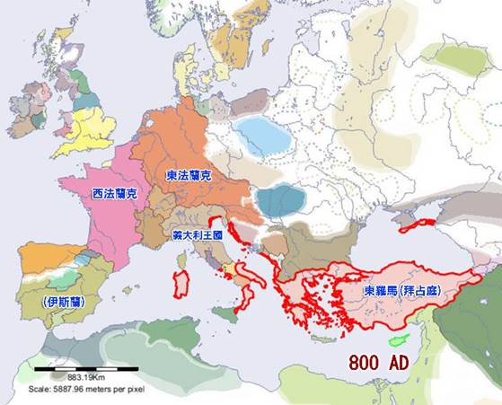 加洛林王朝的巔峰出現在查理曼(Charlemagne, 亦稱查理大帝)統治期間。他於768年繼承王位,並在接下來的幾十年間通過軍事征服和政治聯姻擴大了法蘭克王國的版圖。查理曼的統治領土涵蓋現代的法國、德國、義大利北部、西班牙的一部分以及中歐地區,形成了一個橫跨西歐的龐大帝國。公元800年,查理曼被教皇利奧三世(Pope Leo III)加冕為「羅馬人的皇帝」(Emperor of the Romans),象徵著西方基督教世界的重建,並鞏固了加洛林王朝的統治地位。