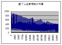 In this study, there are ten DTM data of topographic sample area of Taiwan and The Yangtze River Basin, that including volcano peaks, platform, mountains, gorges, basin and hill, etc. All of them are famous scenic area or familiar landform for people. Every sample area is same 10km×10km square area(Every sample area is 10km×10km). The spacing of X, Y of DTM is 40 meters. Every sample area has 63001 elevation values from DTM data. The 6 sample area of Taiwan as follows: