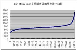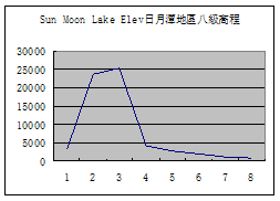 (3) Sample Area T3:Sun Moon Lake Area, Elevation, 200-1000m, Down-faulted basin and two lakes in center, is a famous scenic area. The elevation of lake area is measure from waters level.