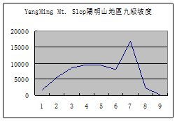 (8) Sample Area Y2:Zhong Mt. Area, Elevation 20-443m, nearby Nanjing city, is slow single-side hills and a famous scenic area.