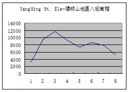 (1) Sample Area T1:Yang-Ming Mt. Area, Elevation 200-950m, Multi-peaks volcanic landform, is a famous scenic area.