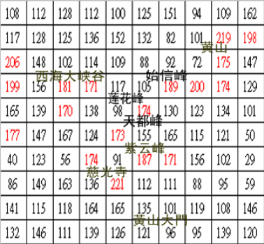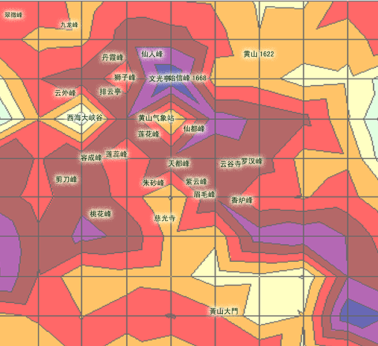 (9) Sample Area Y3:Huang Mt. Area, Elevation 350-1880m, aggregate many edges and peaks, is a famous world nature heritage.