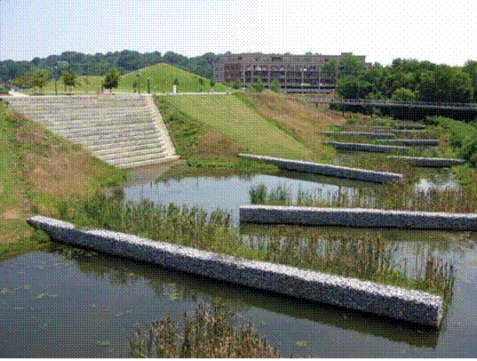 提供野生動物棲息地。人工濕地通過減緩水流速度、截留沉積物和污染物來過濾雨水。濕地棲息地特有的植物吸收污染物,並促進微生物的生長,從而去除水中的污染物。濕地是處理污染逕流的一種經濟有效的實用方法。然而,它們一般只能建在高地和漫灘之外,以避免破壞自然水生生態系統。