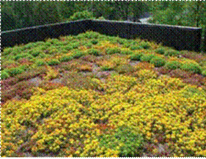 綠色屋頂使用土壤和植物代替傳統的屋頂材料,使降雨滲入和儲存的水分蒸發。在地價很高的密集城市地區,屋頂綠化是合算的。有兩種常見的屋頂綠化類型:廣泛和密集。大面積的綠色屋頂通常有3到4英寸的生長介質,通常種植景天(一種耐寒的地被植物),需要較少的灌溉,並且維護要求較低。密集的綠色屋頂有高達12英寸的生長介質,可以支援灌木和樹木。保持較大植物材料的能力也需要持續灌溉和更定期的維護計畫。綠色屋頂在建築設計中很容易適應。改造現有屋頂需要進行結構評估和計算。