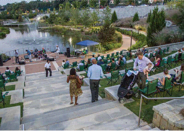 亞特蘭大歷史悠久的第四沃德公園(Fourth Ward park)的一個占地兩英畝的拘留池被建成了城市公園的中心平原、河岸帶和地形都是需要考慮的共同特徵。文化和歷史元素必須與其他現有場地特徵一起考慮。