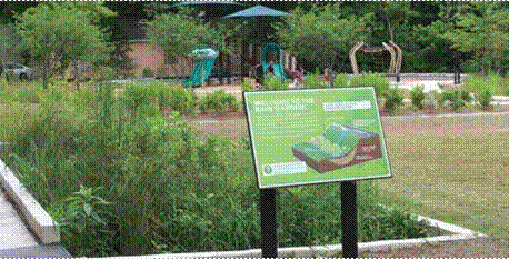 •建造一個室外教室,並提供教育材料,告知公園遊客綠色雨水基礎設施實踐的重要性。