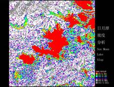 (3) Sample Area T3:Sun Moon Lake Area, Elevation, 200-1000m, Down-faulted basin and two lakes in center, is a famous scenic area. The elevation of lake area is measure from waters level.